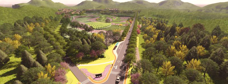 項目規劃布局為“一心、二區、五點”,總體規劃面積約10000畝,計劃于2017年和2018年度分別施工。其中,“一心”即以即墨市東部的藍谷核心區為中心,打造即墨東部的紅葉景觀中心;“二區”即以藍谷核心區規劃建設為依托,以溫泉、鰲山衛現有山體生態旅游資源為基礎,以遠期建設發展集觀光、旅游、度假為一體的綜合性生態紅葉景觀為目標,打造東部藍谷核心紅葉景觀體系的兩個紅葉風景旅游觀光區,規劃總面積約8000畝。