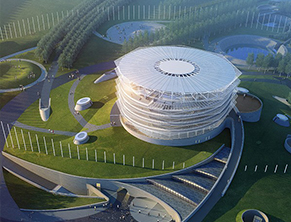 日照市科技館該項目西鄰青島路、東臨綠舟路、南鄰日照植物園,建筑高度34米,建筑面積1.8萬平方米,概算投資2億元。科技館設計中引入"黑洞"和"星空"的概念,作為"黑洞"的中心,所有的場地景觀及道路都圍繞這個中心沿螺旋狀放射形布置,暗示了整個場地的"力的源泉"都來自于科技館。